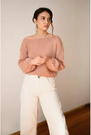 Designed to flatter all silhouettes with its loose oversized fit, slightly cropped length and puffy balloon sleeves. Here shown in Petal, a beautiful warm powder pink.