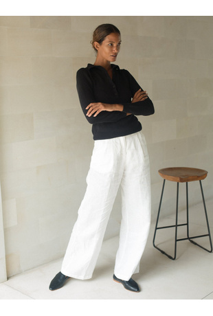Taking cues from the intimate simplicity of vintage undergarments, the Chopin Knit Shirt boasts a slim fit with a subtle ribbed texture and a sustainable button-down front, redefining the meaning of luxury basics. Complete the look with the Linen Pleat Pant or the Gael Knit Skirt.