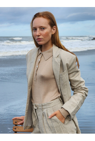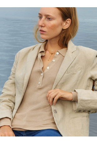 Taking cues from the intimate simplicity of vintage undergarments, the Chopin Knit Shirt boasts a slim fit with a subtle ribbed texture and a sustainable button-down front, redefining the meaning of luxury basics. Complete the look with the Linen Blazer and Linen Pleat Pant.