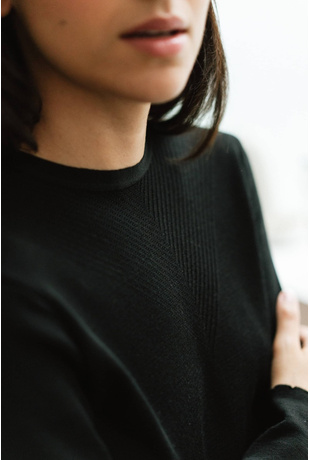 • Play of transparency in the neckline in the smooth knit