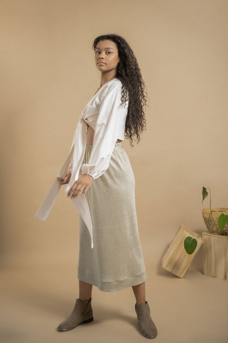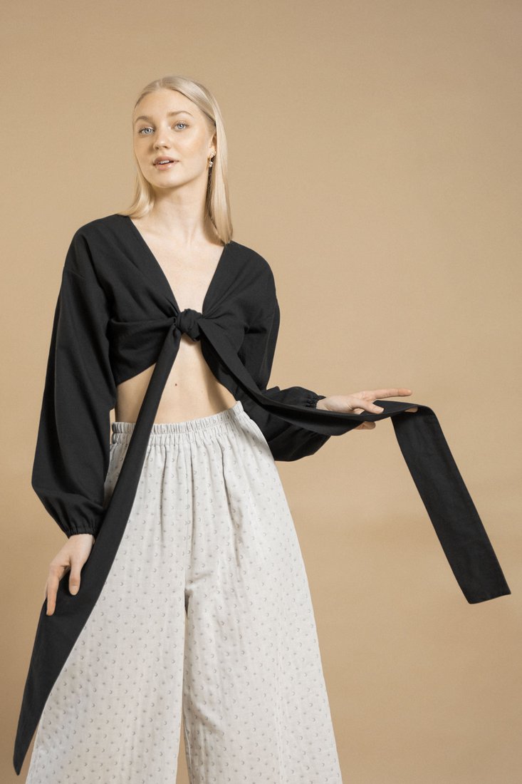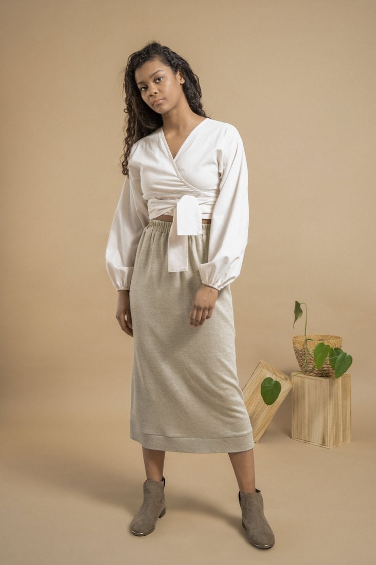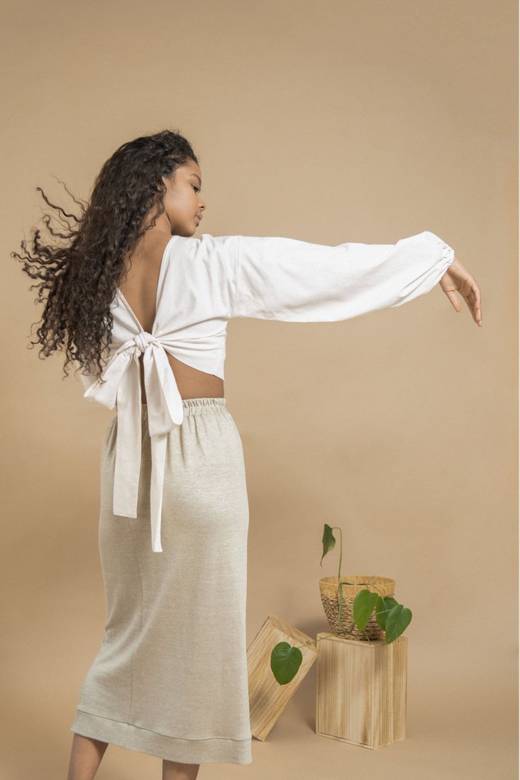 The organic cotton is grown in Benin, Tanzania and India. The fabric is designed in Paris, France. Spinning, weaving, dyeing and washing of the fabric is done in La Loire, France. The fabric is GOTS certified, which means it includes strict environmental and social criteria for operations along the entire supply chain.