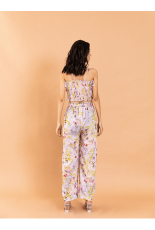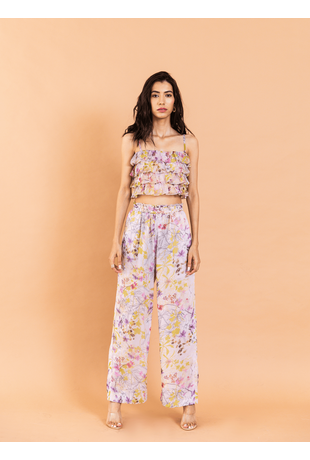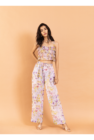 Ruffle spaghetti top handcrafted in our juliet print in sustainable chiffon.