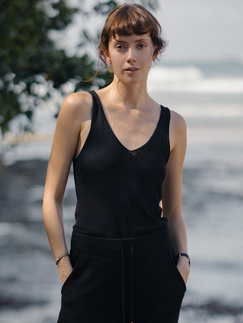 Our deep V neck tank in sustainable, delicately ribbed rayon has a fluid drape and feels silky and cool against the skin. Featuring a V-neck and backline and low-cut sleeves design, the Deep V Tank Knit is the perfect addition to any capsule wardrobe, a staple item for any season.
