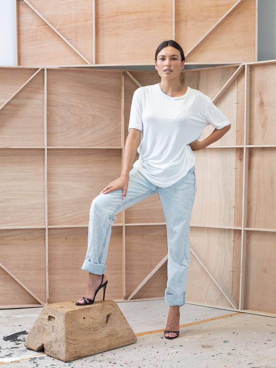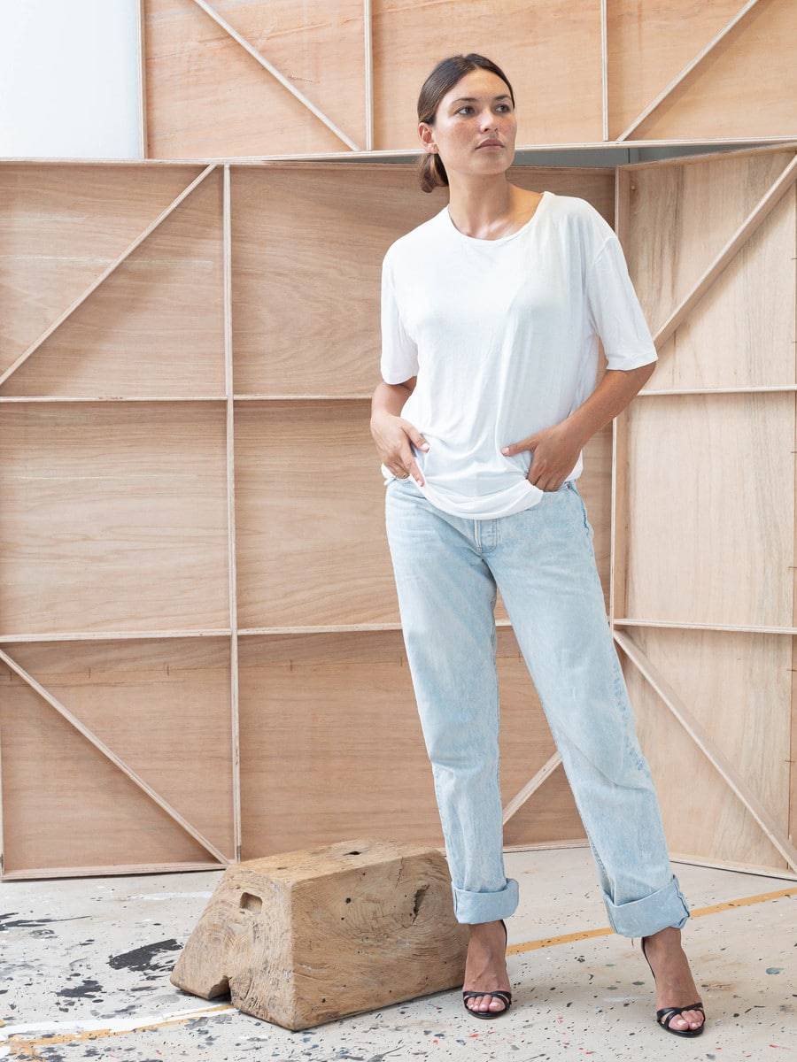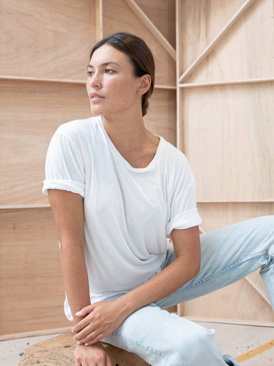 Our Bamboo round neck tee skims the body with a slight kick at the sleeve.