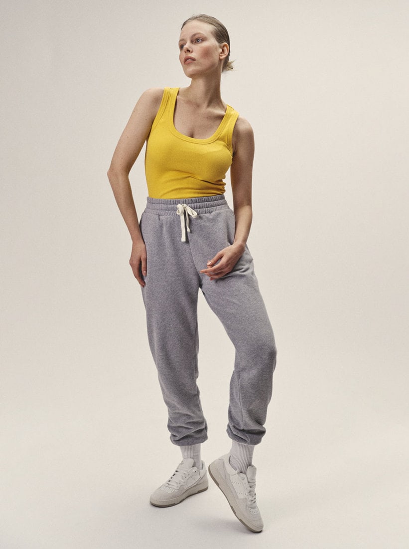 Description: Our basic tank top in finely ribbed, soft organic cotton has a classic yet timeless fit. It has a rounded carre neckline at the front and a slight racerback shape at the back. Cool as an undershirt or worn separately in summer. The elastane content ensures a very good fit.