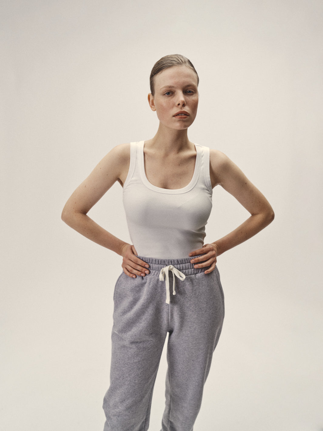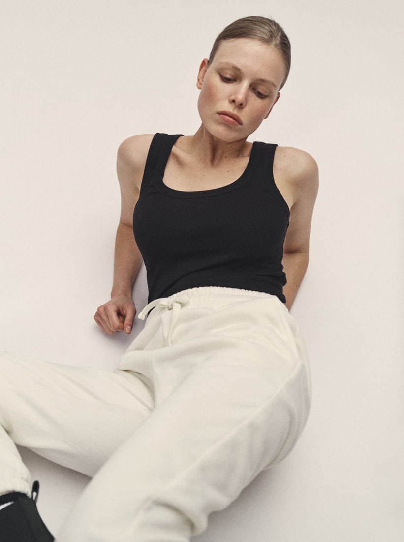 Description: Our basic tank top in finely ribbed, soft organic cotton has a classic yet timeless fit. It has a rounded carre neckline at the front and a slight racerback shape at the back. Cool as an undershirt or worn separately in summer. The elastane content ensures a very good fit.
