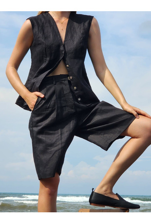The Gesine vest is a new-season addition to your work-to-weekend wardrobe. Crafted from fine linen, the button-down design can be worn on its own or styled over shirts and dresses alike. We like it best when styled with the matching blazer and shorts for a directional approach.