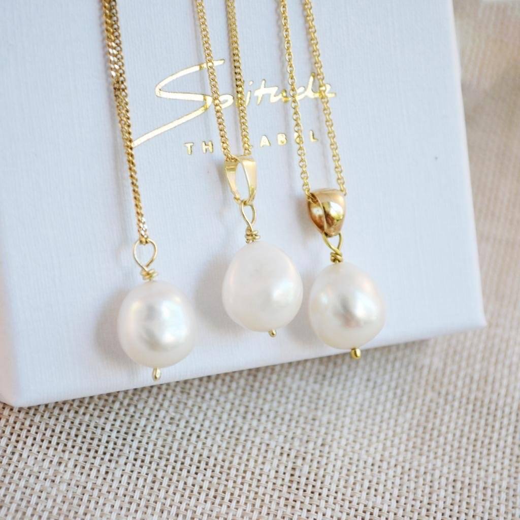 The organic shape of the freshwater pearl gives this necklace an elegant and playful look. Order your complete necklace or just the Golden Pearl pendant. We have three different pendants available: (starting from the left) the Simple, Thin Pendant eye, and Chunky Pendant eye. Which one is your favorite?