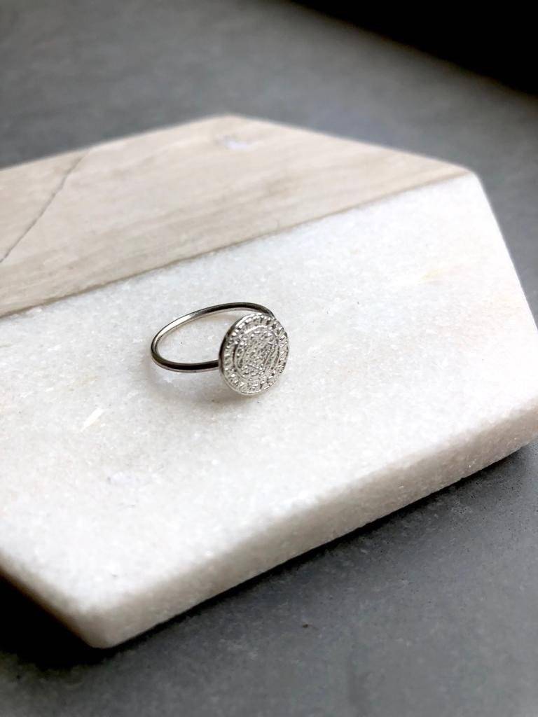 The Coin pinky ring is made of recycled 925 silver. It can be worn as a pinky ring, but also looks fabulous in a bigger size on any other finger. Wear it individually or stack this ring up with some other rings for a more edgy look.