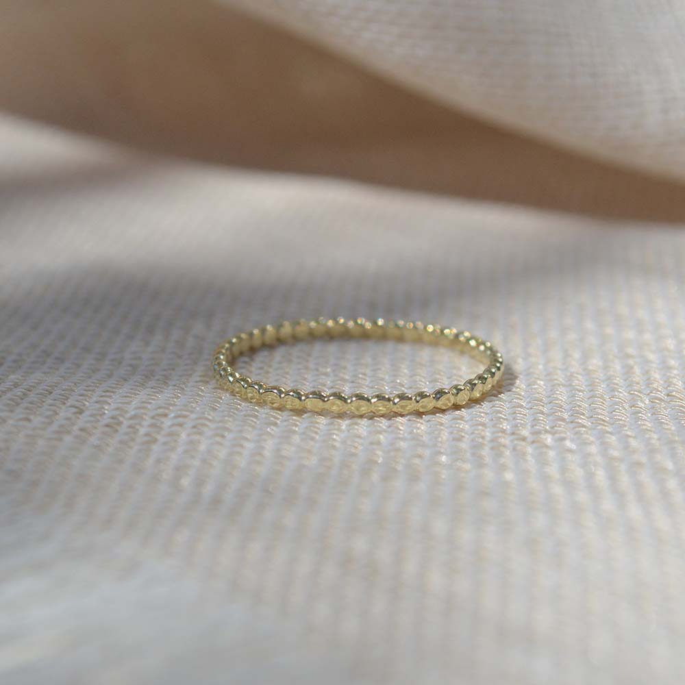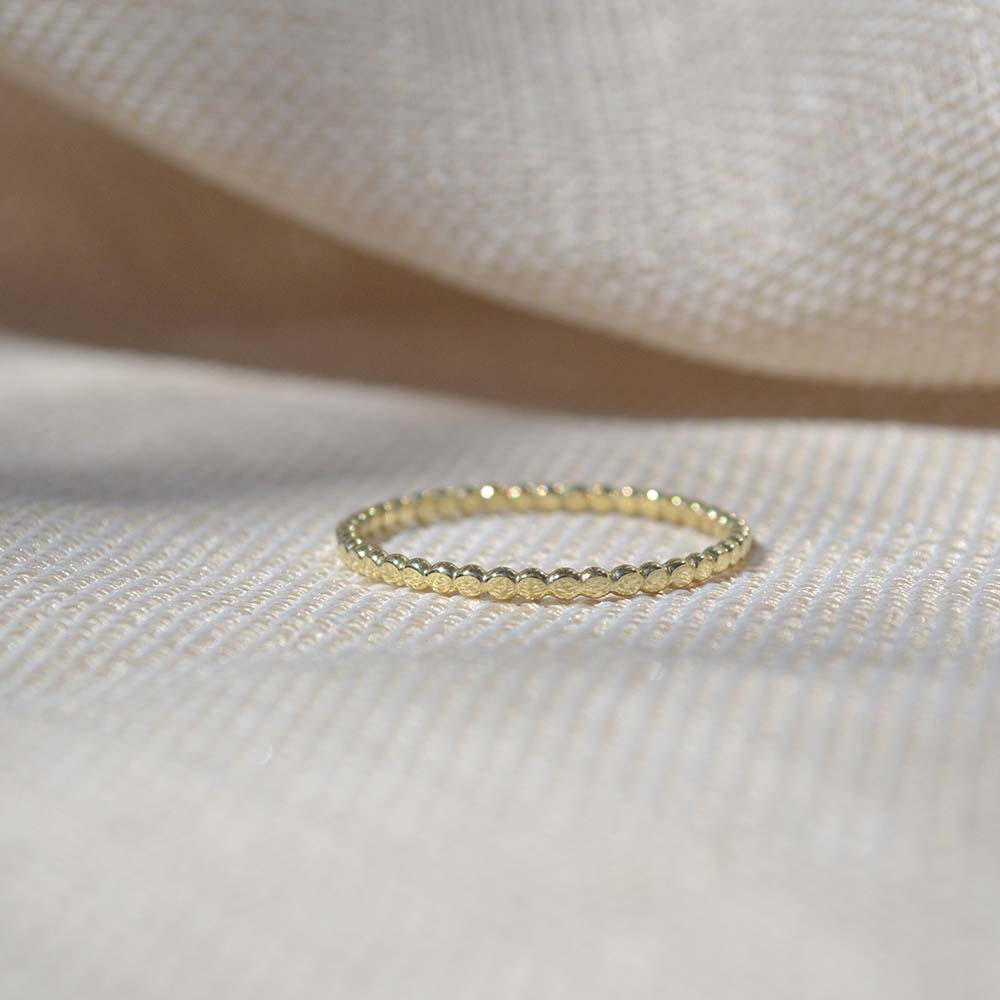 The Flat dotted Ring is handmade of 14K recycled gold and is available in two variations. Choose the thin Flat dotted ring to combine with other stacking rings or go for the chunky version with a thickness of 2 mm. The flat dotted shape gives this ring a timeless yet minimalistic look.