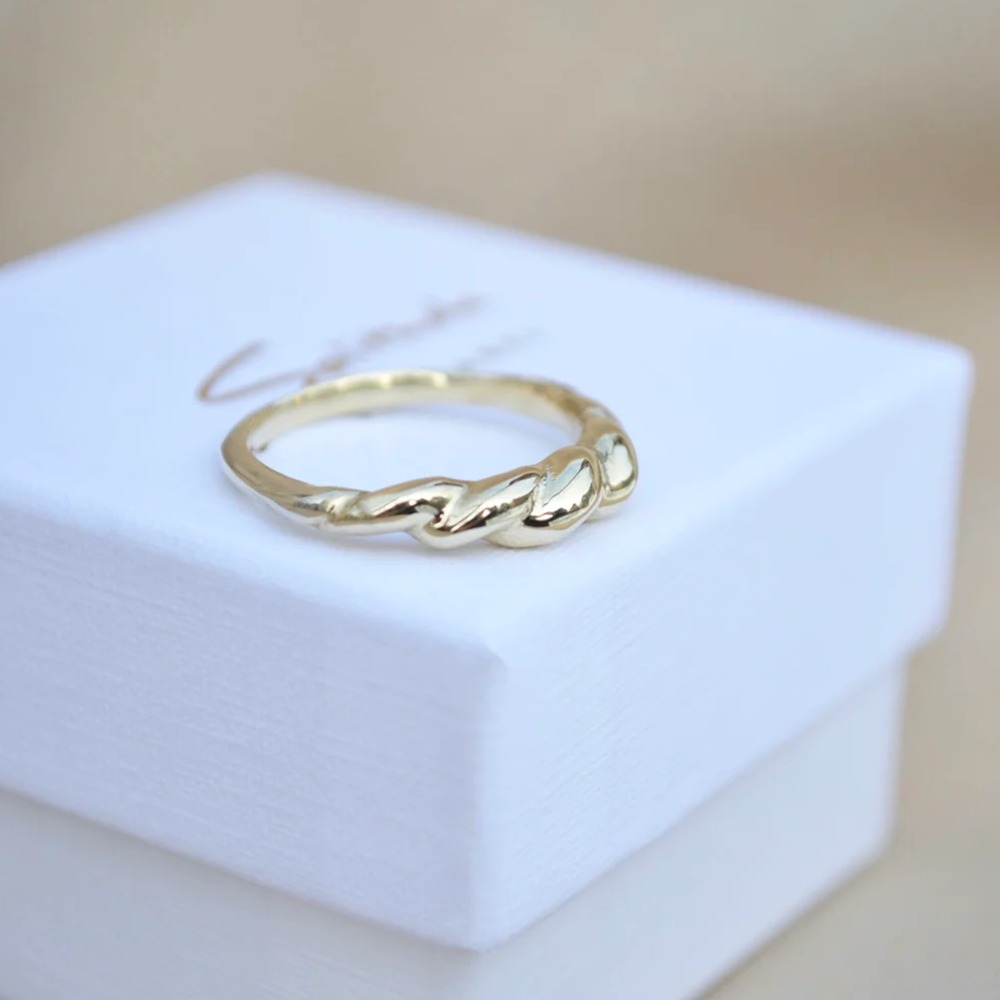 The Flore Ring is timeless yet authentic. It is characterized by its soft edges and perfect asymmetry. The design reminds us of a fresh croissant in the morning sun. The ring is designed and handmade by us at our Atelier in Amsterdam. We use the highest quality of recycled 14K Gold.