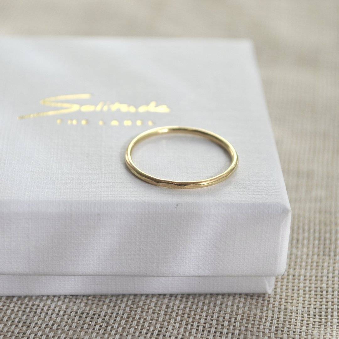 The Hammered stacking rings are minimalistic and elegant. They are made of high-quality 14K recycled gold. The hammered structure gives this ring a little sparkle when held against the sun. Stack this ring up with some other golden rings or wear it individually.