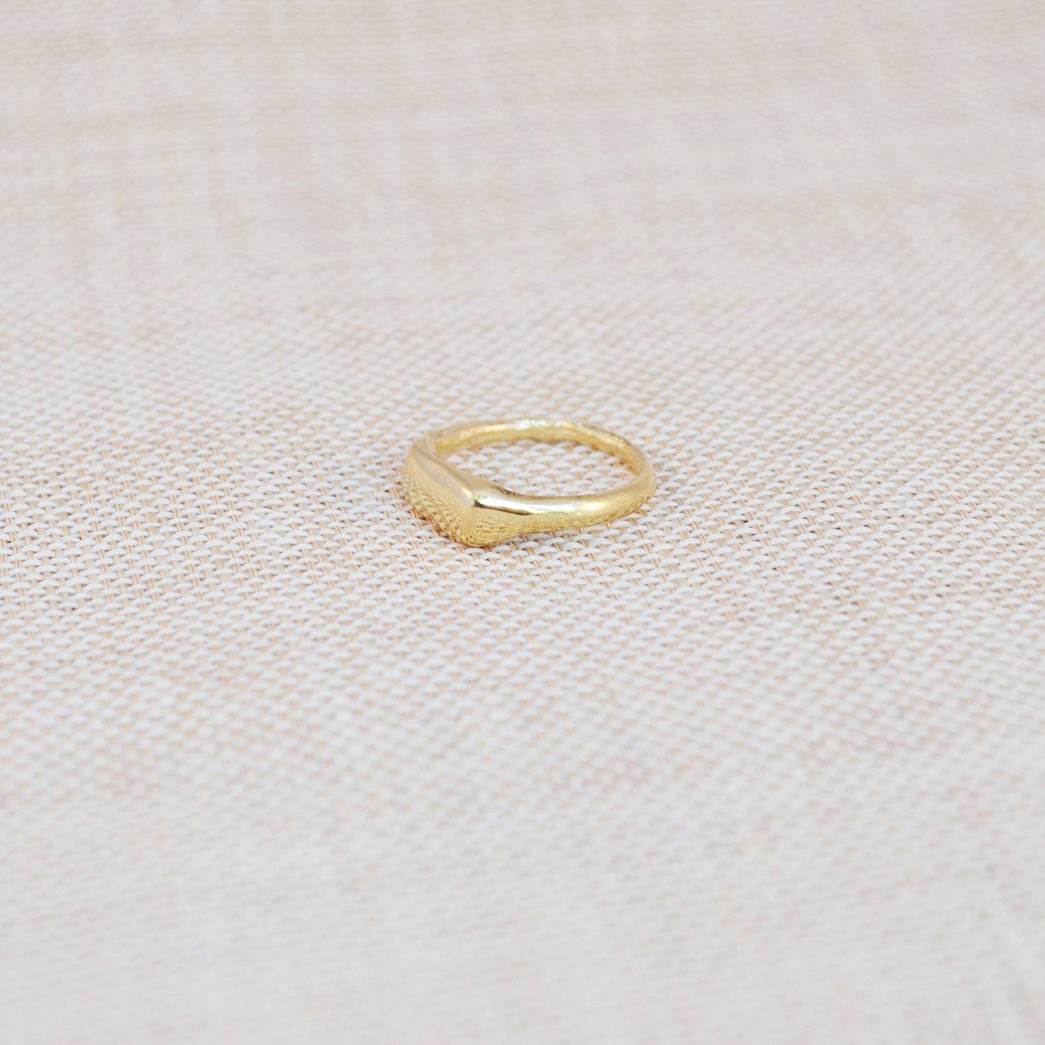 This solid organic shaped ring is inspired by the design of a classical signet ring. It is designed & handmade by us at our Atelier in Amsterdam. We use high-quality recycled solid 14k gold. Our organic shaped Signet ring is also available in sterling silver. We love to wear the Signet Ring on the pinky, but feel free to style it your way! Are you a pinky ring lover?