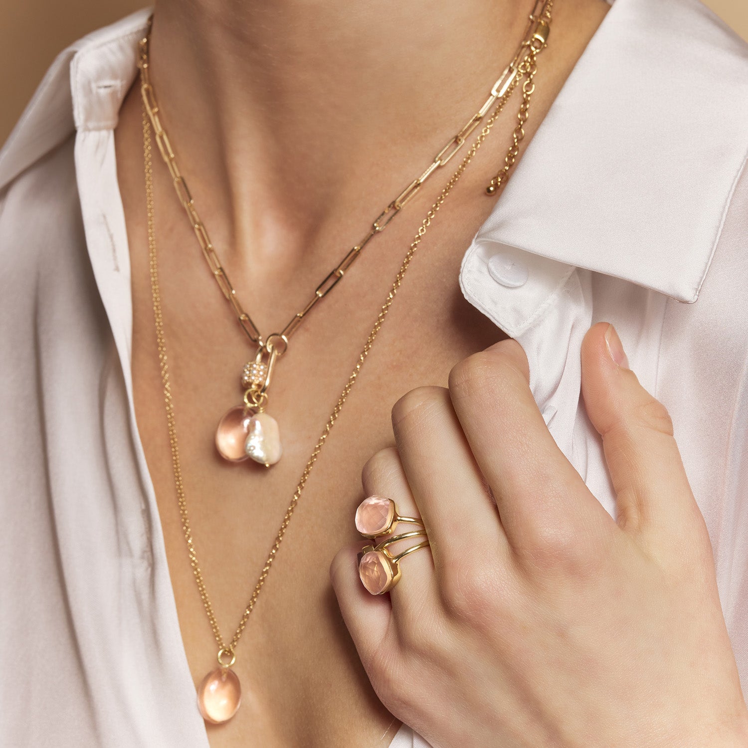 Sophia Rose Quartz Gold Ring
