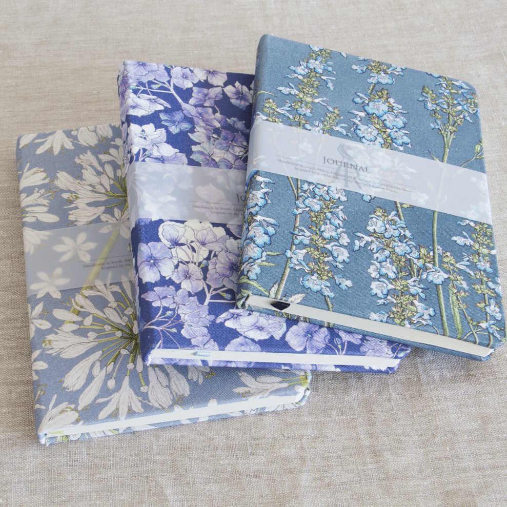 Our luxurious A5 size journals feature prints of original watercolour artworks painted by Ann C. Jooste, developed in collaboration with the Anthonij Rupert Estate. These designs celebrate the iconic summer flowers growing in the Estate Gardens.