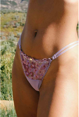 The classic Bonnie string knicker is made with beautiful floral embroidery paired with a soft cotton gusset, double side straps & adorned with our signature tag.