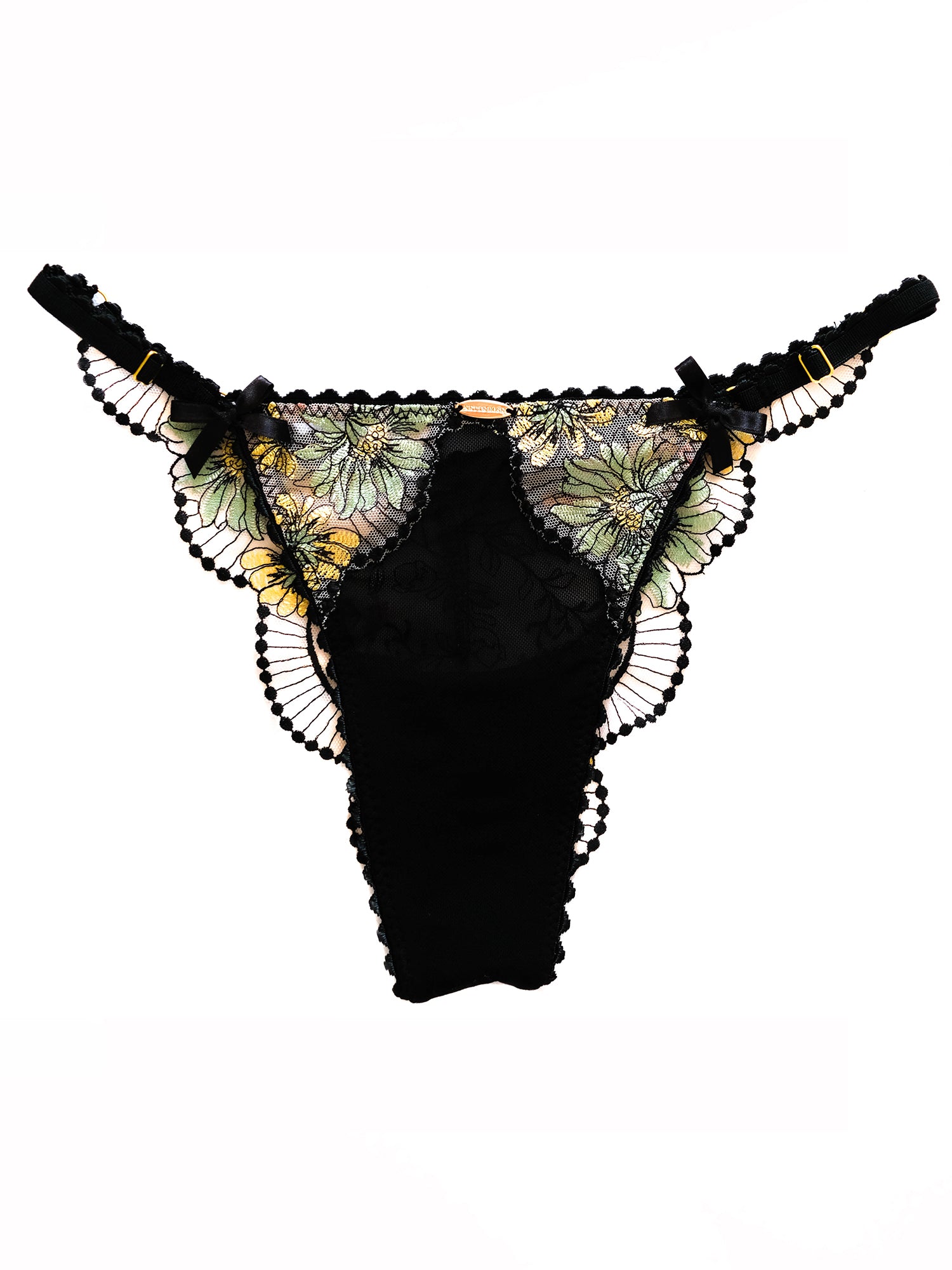 Our bikini knicker made with beautiful embroidered lace paired with a soft cotton gusset adjustable side strap and a cheeky lace back ~ adorned with the signature Nette Rose tag.