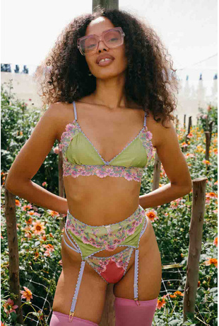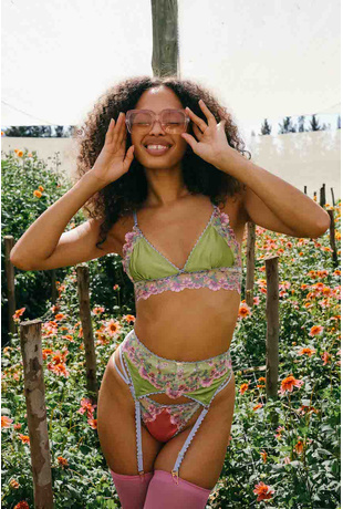Go wild for awhile... wear the green bralette covered in pink flowers.