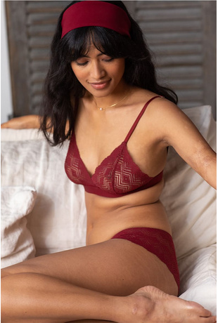 Dark red, geometric lace made of recycled fibre and cut without underwire, Dawa is our new favourite bra : the one that combines comfort and sexy style. To wear without moderation!