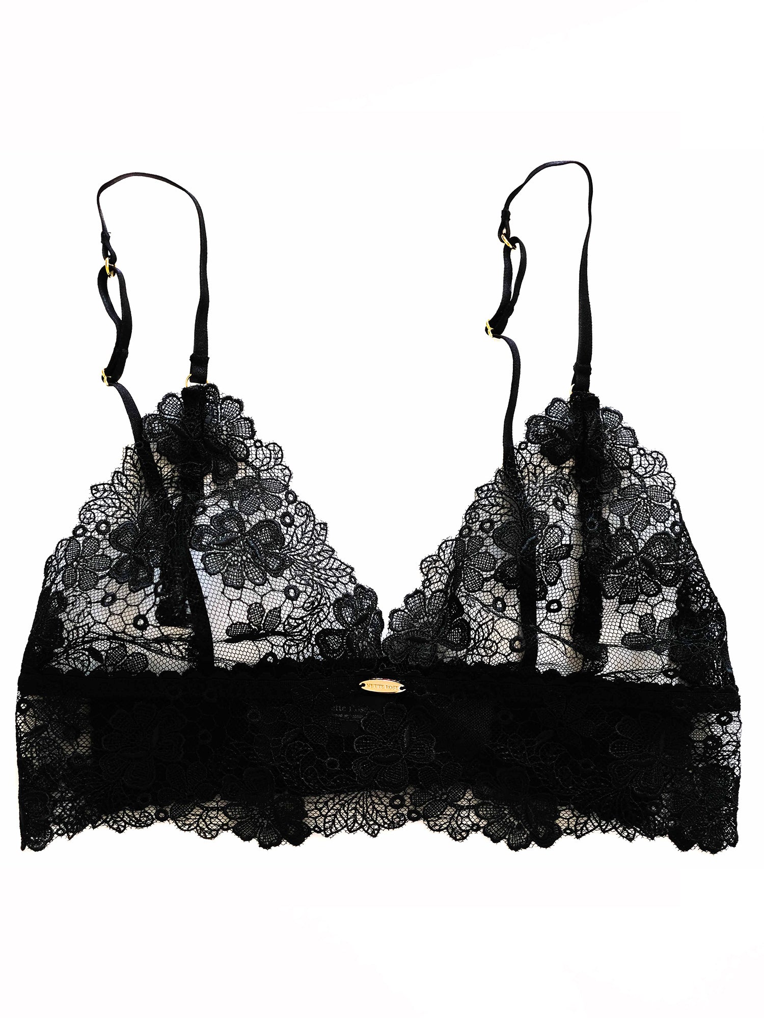Our bestselling go-to gal for a flattering fit ~ made with beautiful soft lace with floral embroidery ~ gold hardware and the signature Nette Rose tag ~ adjustable shoulder straps for a personalised fit and fastens at the back with a hook-and-eye closure.