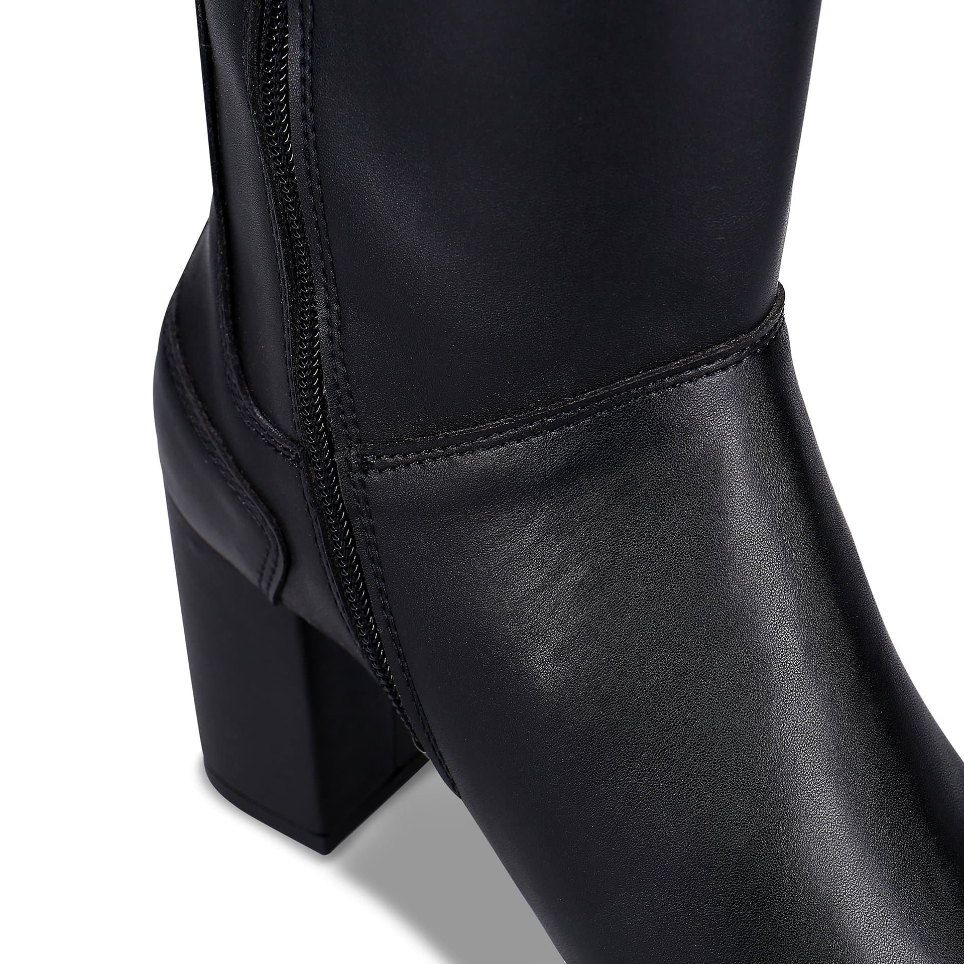 Discover the elegance and comfort of the Greta Black high knee boots, perfect for those seeking a sophisticated style without compromising their ethical values. Featuring a modern square toe design and an 8 cm heel, these boots are made from premium non-leather microfiber, combining durability and environmental responsibility.