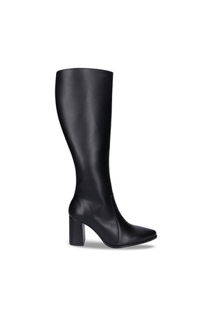 Iona Black: High heel boots, knee shaft with plain toe and elegant look crafted from apple leather