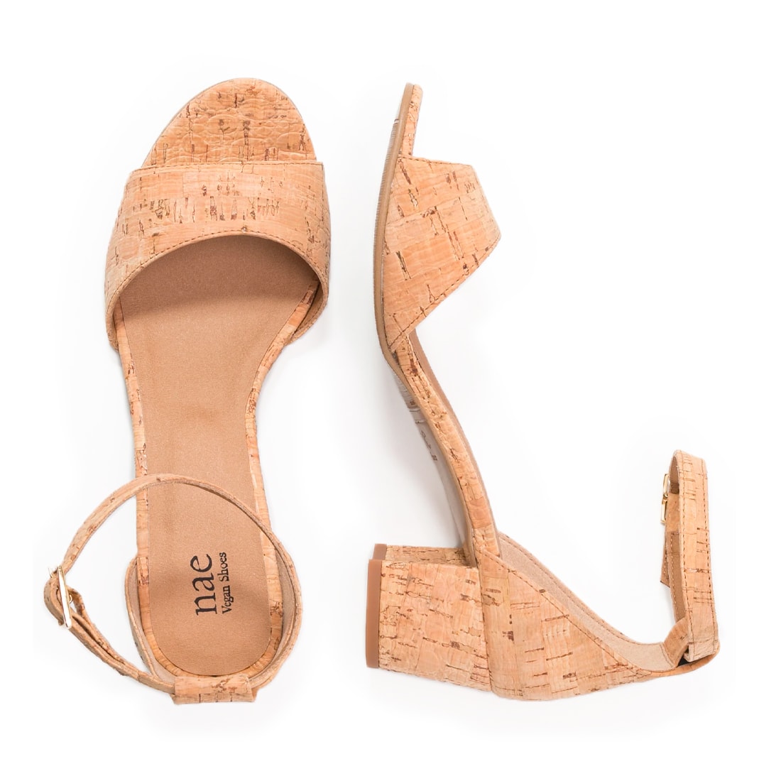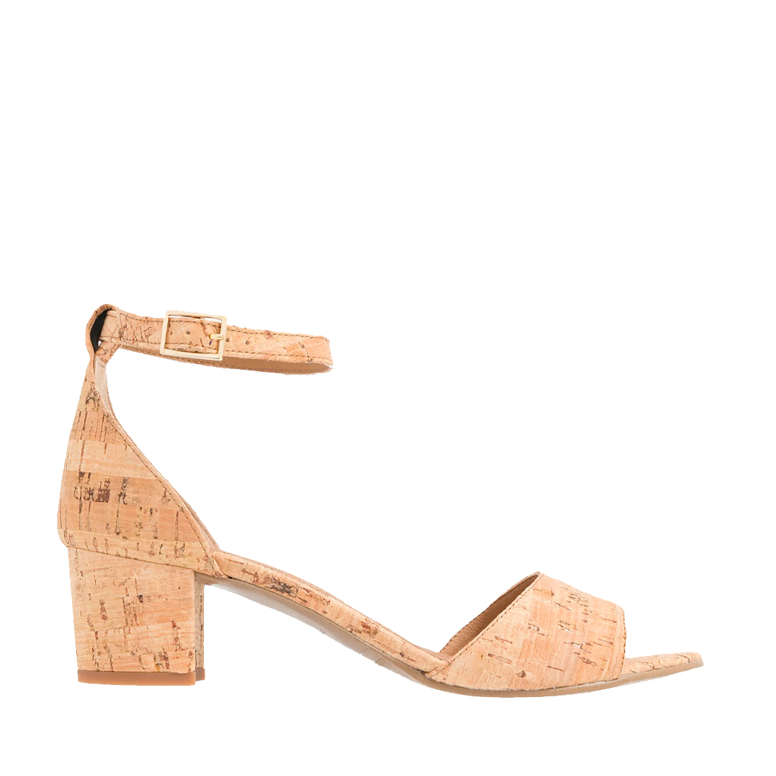 Meet CORA Cork, the women's mid-heel sandals with ankle straps in embossed natural cork, an eco-friendly material.