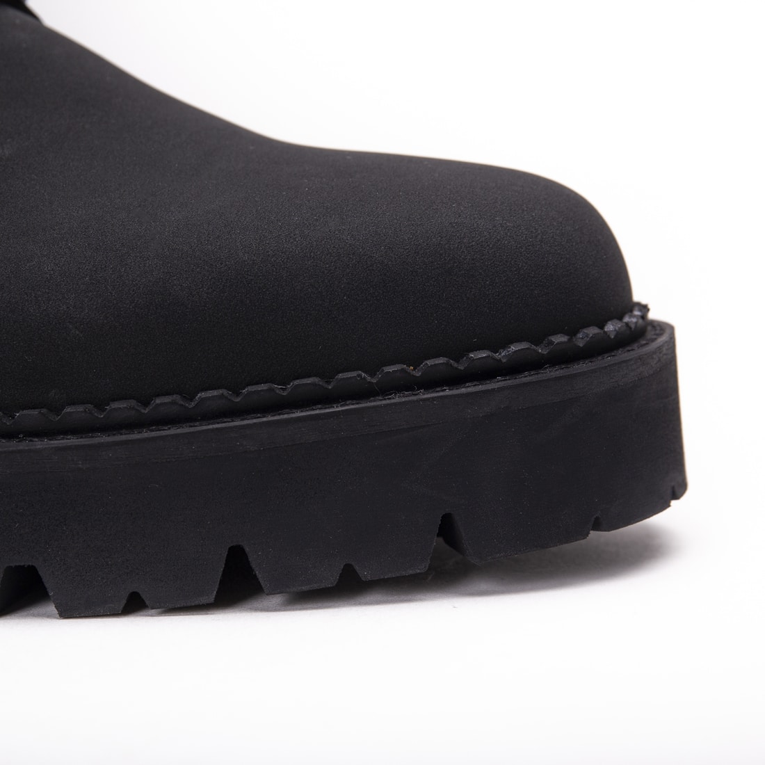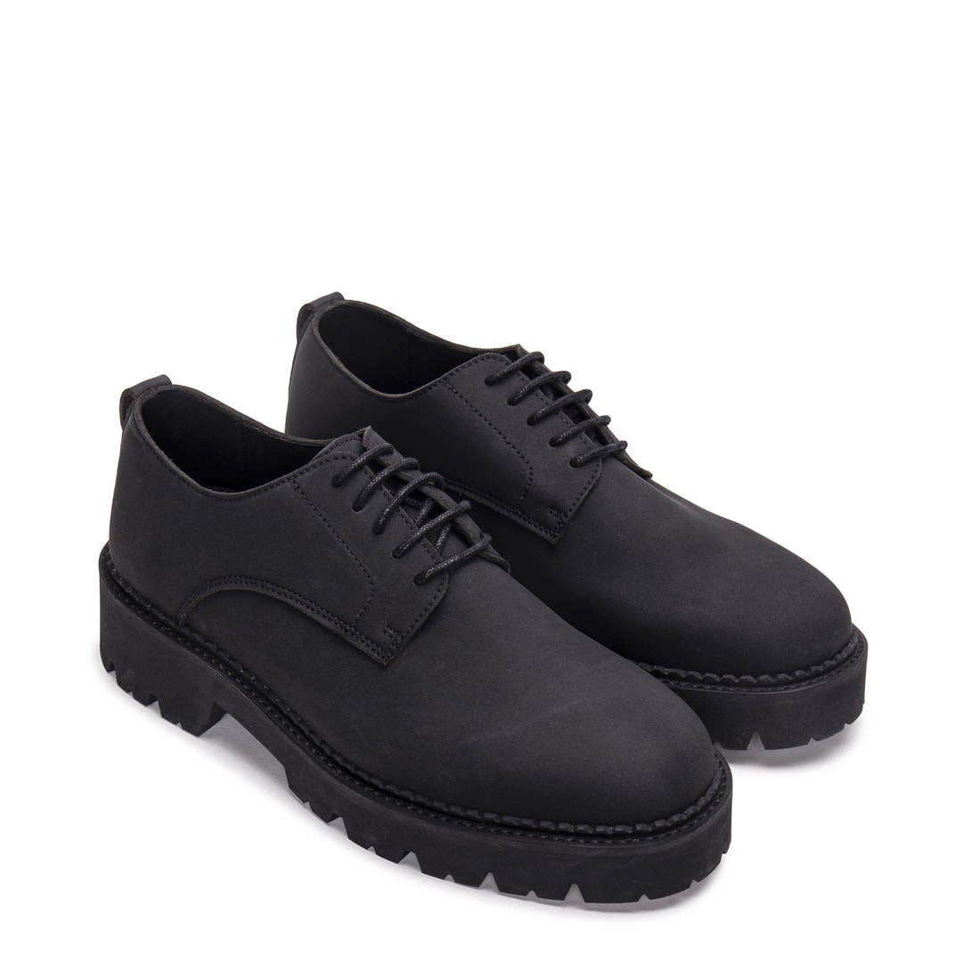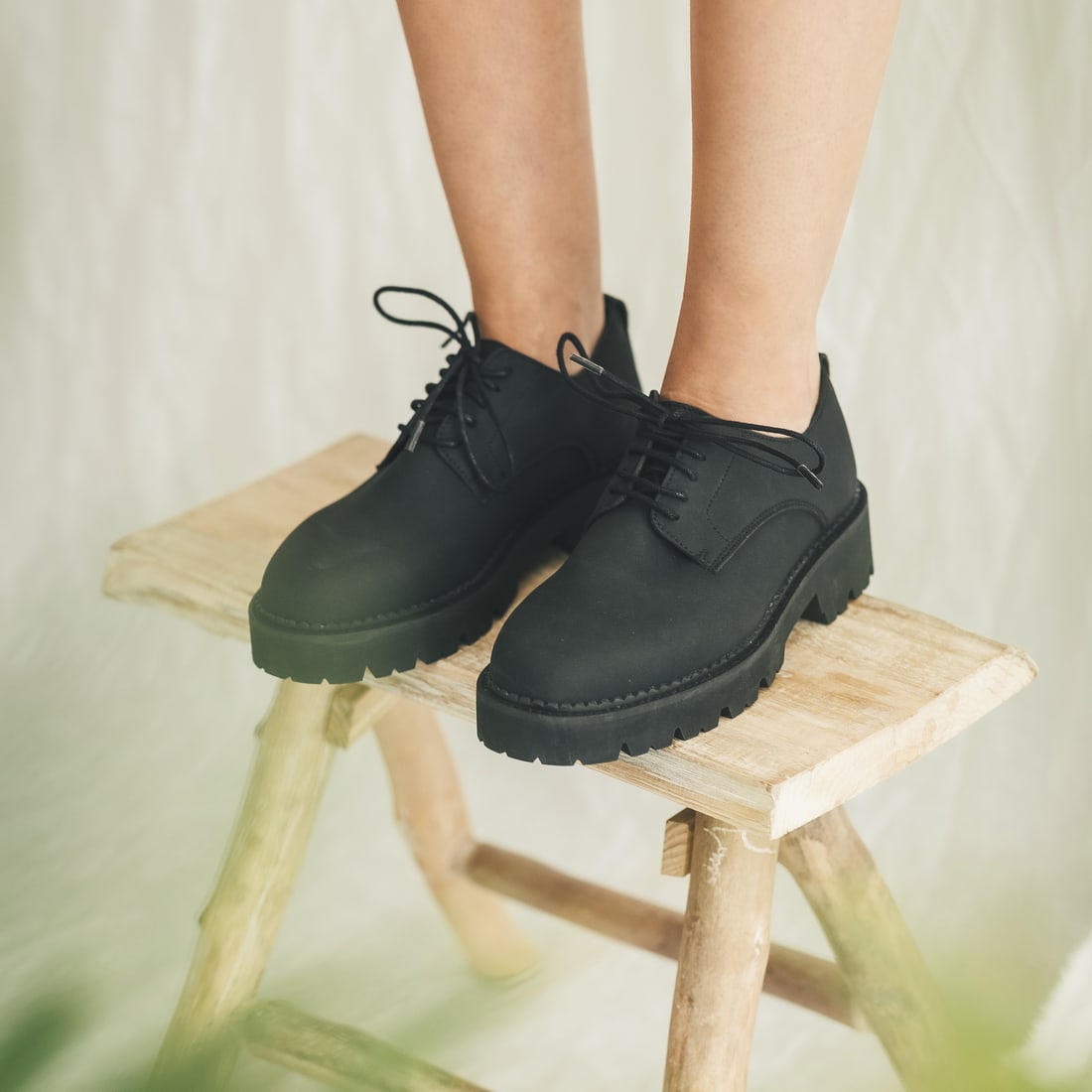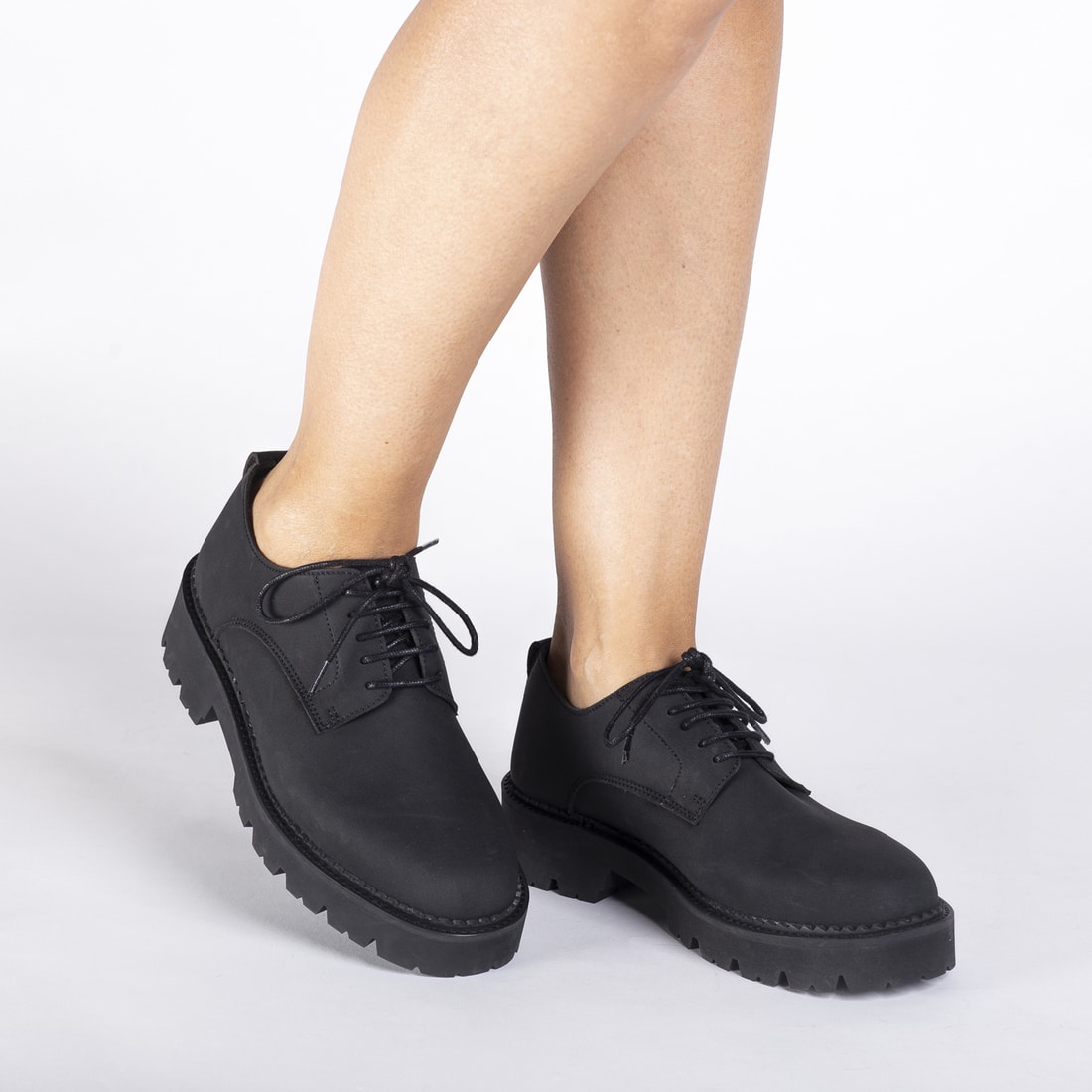 Helen: the Casual Derby Plain-Toe made with black Vegan Nobuk and a Ridged Sole