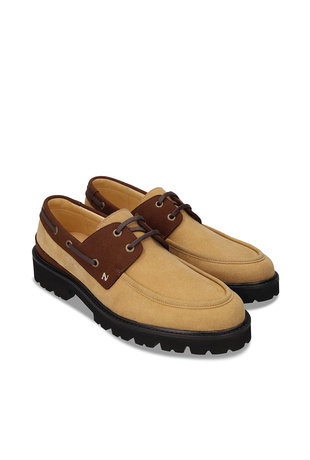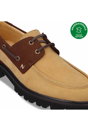 Introducing our contemporary men's boat shoe, meticulously crafted with a blend of beige and brown natural vegan suede microfiber for a touch of timeless sophistication. With its unique and modern design, this shoe redefines casual elegance. Our vegan shoes are not only stylish but also ethical, offering a cruelty-free alternative without compromising on quality or comfort. Elevate your footwear collection with our distinctive boat shoe model, where sustainability meets modern fashion effortlessly. Step into the future of footwear with our commitment to eco-friendly and cruelty-free materials.