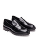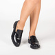 Elena Black Loafer with strip over the saddle made with vegan leather