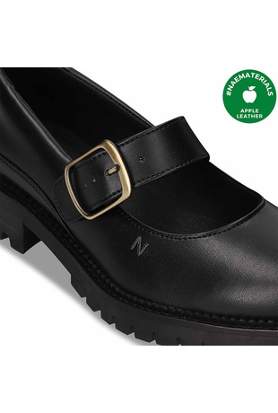 Introducing our sophisticated flat open derby vegan shoes, meticulously crafted from luxurious black apple leather.