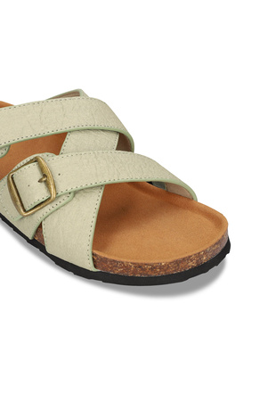 Introducing "Samet" by NAE Vegan Shoes, your stylish and sustainable choice for vegan sandals. Crafted from black Piñatex, these flat sandals feature a stunning design with three straps at the front, creating a beautiful aesthetic. The insole, made of cork, provides natural comfort and support with each step. Elevate your ethical fashion game with "Samet," the perfect pair of vegan sandals for eco-conscious individuals who value both style and sustainability.