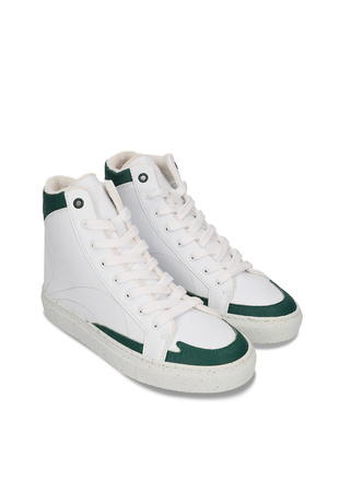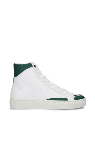 Crafted from Piñatex in the detail in green and Apple Leather, both eco-friendly materials, this sneaker offers durability and sophistication.