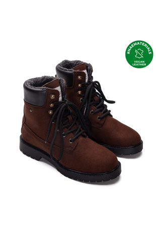 Gadea Brown ankle mountain boot warm organic cotton lining made with vegan suede-like leather