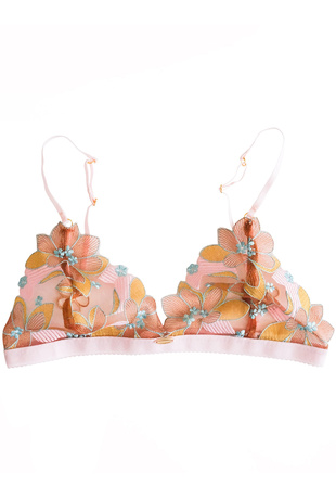 Made from floral embroidery in a classic silhouette, with adjustable shoulder straps for a personalised fit, fastening at the back with a hook-and-eye closure.