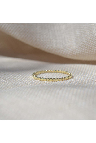Der Twisted-Stapelring ist ein raffinierter handgefertigter, hochwertiger Ring aus 14 Karat recyceltem Gold. Dieser verdrehte Stil verleiht diesem Ring einen eleganten Look. Tragen Sie diesen Ring einzeln oder stapeln Sie ihn mit einigen anderen goldenen Ringen, um Ihre Serie zu vervollständigen.