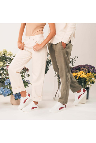 Die Partnerfabrik von NAE, die sich auf die Herstellung von Schuhen höchster Qualität spezialisiert hat, liegt etwa 40 Kilometer außerhalb von Porto - Portugal und stellt täglich bis zu 350 Paar Schuhe für NAE und andere Kunden her. 30 Mitarbeiter arbeiten auf 500 Quadratmetern in den Büros und an den Produktionslinien. Diese Manufaktur war eine der ersten, die gebrauchte Autoteile zu neuen Materialien für die Schuhherstellung recycelte. Darüber hinaus recycelt die Fabrik selbst alle ihre Materialabfälle für verschiedene Anwendungen. Um die Transportemissionen gering zu halten, werden alle Materialien vom europäischen Markt bezogen, mit Ausnahme von Piñatex, das von den Philippinen importiert wird.