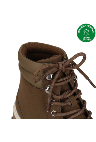 Die Partnerfabrik von NAE, die sich auf die Herstellung von Schuhen höchster Qualität spezialisiert hat, liegt etwa 40 Kilometer außerhalb von Porto - Portugal und stellt täglich bis zu 350 Paar Schuhe für NAE und andere Kunden her. 30 Mitarbeiter arbeiten auf 500 Quadratmetern in den Büros und an den Produktionslinien. Diese Manufaktur war eine der ersten, die gebrauchte Autoteile zu neuen Materialien für die Schuhherstellung recycelte. Darüber hinaus recycelt die Fabrik selbst alle ihre Materialabfälle für verschiedene Anwendungen. Um die Transportemissionen gering zu halten, werden alle Materialien vom europäischen Markt bezogen, mit Ausnahme von Piñatex, das von den Philippinen importiert wird.