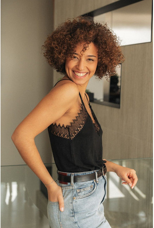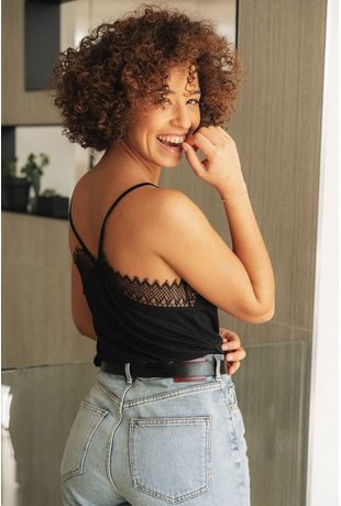 Stephany wears size S.
