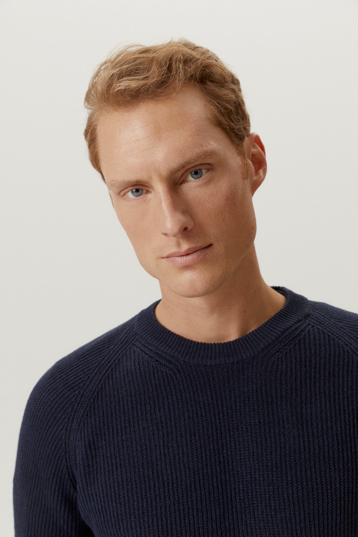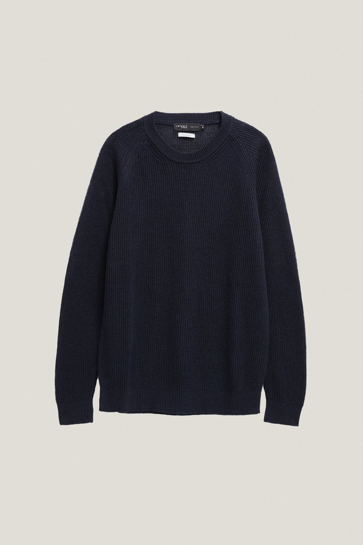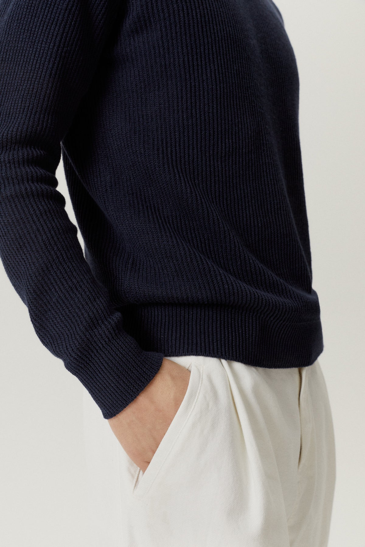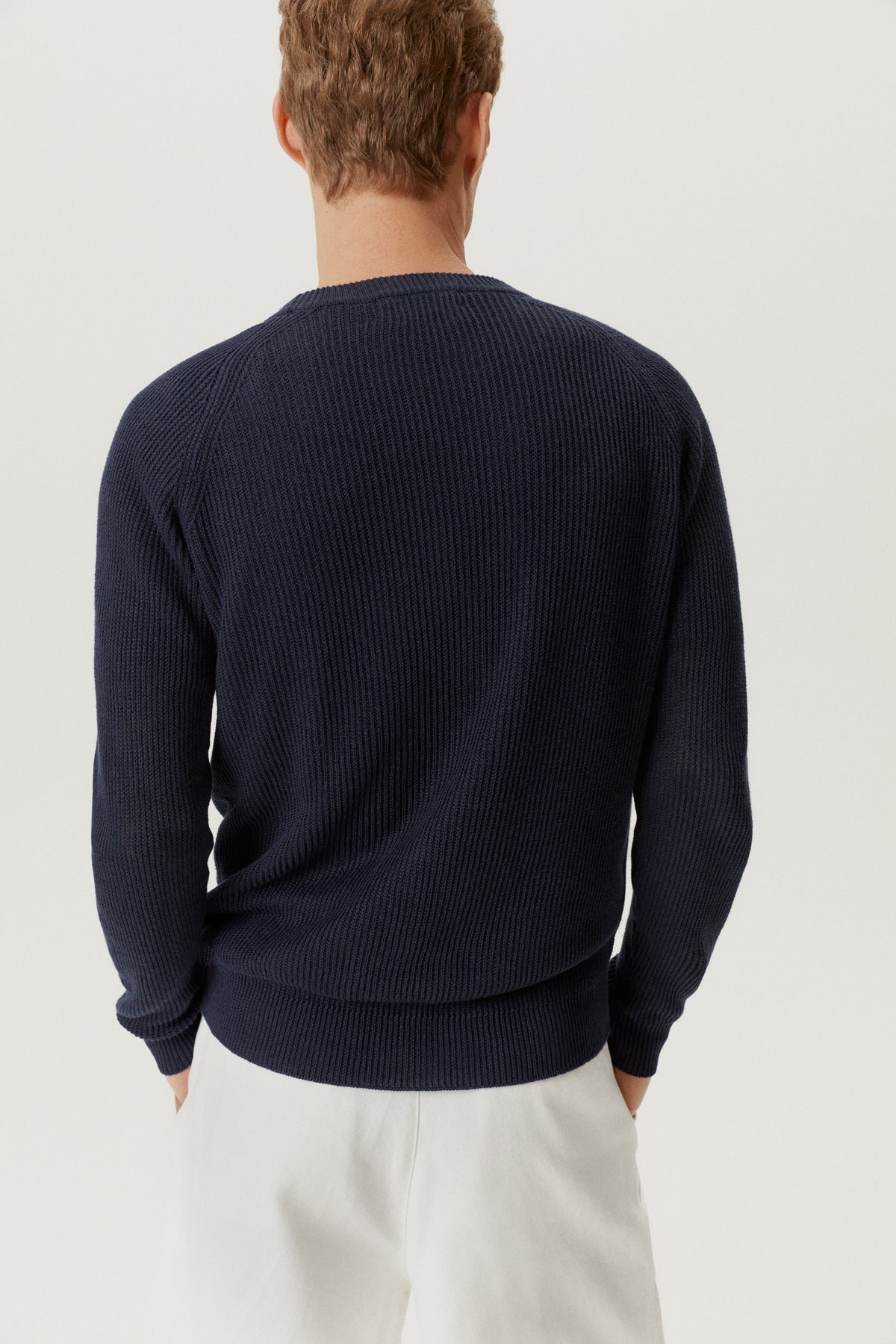 The Linen Cotton Ribbed Sweater - Blue Navy