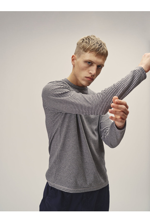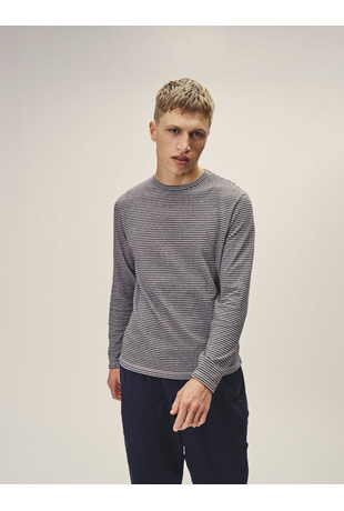 Long sleeve striped T-shirt made of 72% organic cotton and 28% recycled polyester.