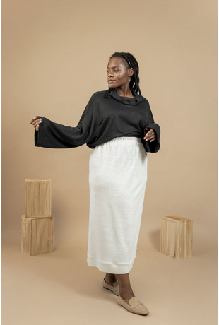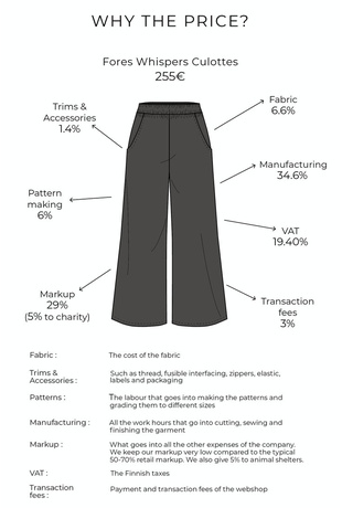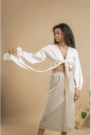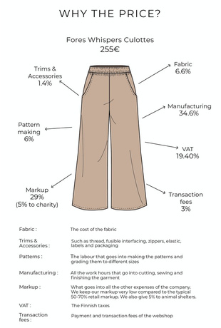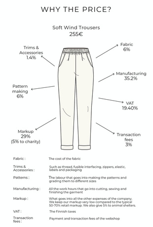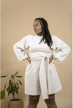 Every TAWAST piece goes through Milla’s hands from the designing and pattern making to the manufacturing and packaging. That means less transportation, no back and forth with a factory. All the garments are made to order by herself so they don’t produce more things into the world than there is a use for.