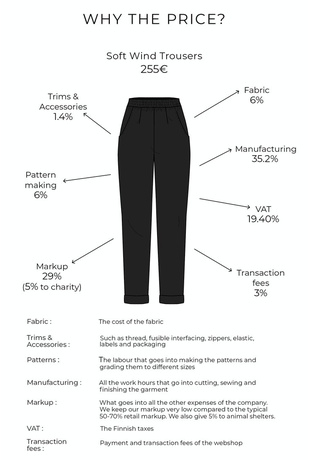 Every TAWAST piece goes through Milla’s hands from the designing and pattern making to the manufacturing and packaging. That means less transportation, no back and forth with a factory. All the garments are made to order by herself so they don’t produce more things into the world than there is a use for.